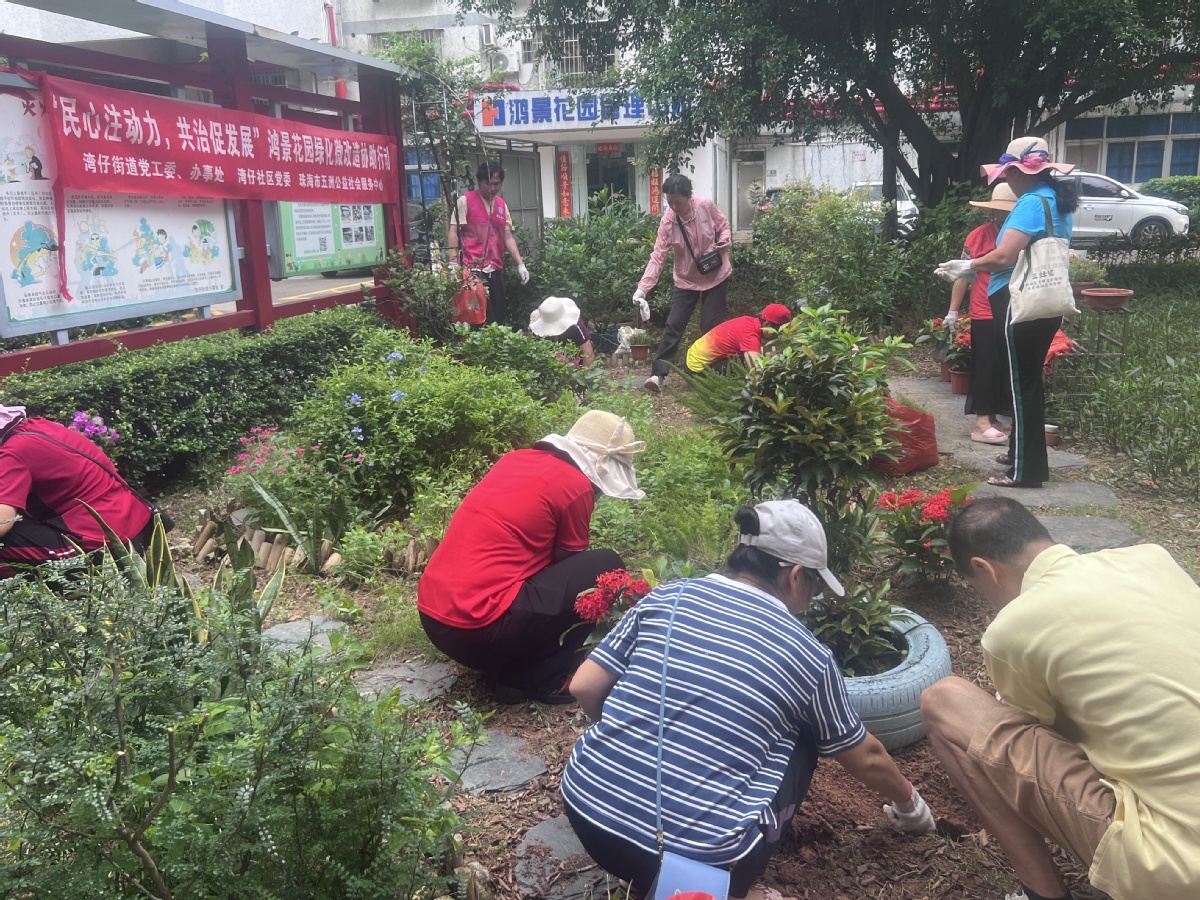 为进一步提升居民的幸福感和满意度,增强小区居民爱护环境意识,7月24日上午,香洲区湾仔街道湾仔社区党委联合珠海市五洲公益社会服务中心,在鸿景花园开展“民心注动力,共治促发展”绿化微改造行动。