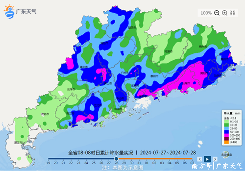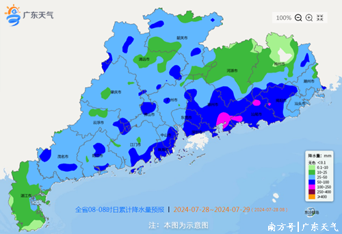 具体预报:28日,南部市县阴天,有暴雨,局部大暴雨或特大暴雨,珠江三角洲中北部、粤北市县阴天,有中到大雨局部暴雨。