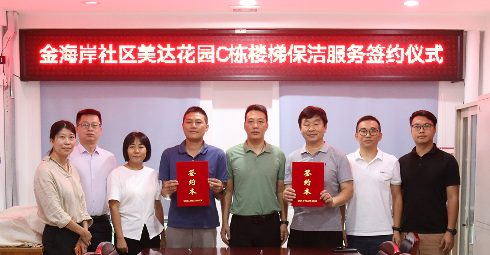 7月30日,金海岸社区美达花园C栋的居民,与金海物业顺利签订了楼梯保洁服务合同,今后,该楼栋的环境卫生将得到专业的管养。