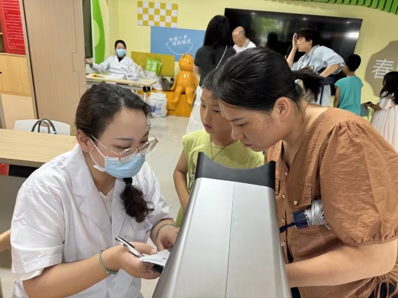 活动中,小朋友们在医生的指导下,接受了专业的验光和视力检查。检查结果显示,有不少的小朋友已经出现近视问题,医生立刻与家长沟通,提醒小朋友们及时做好近视防控,以免近视继续加深。