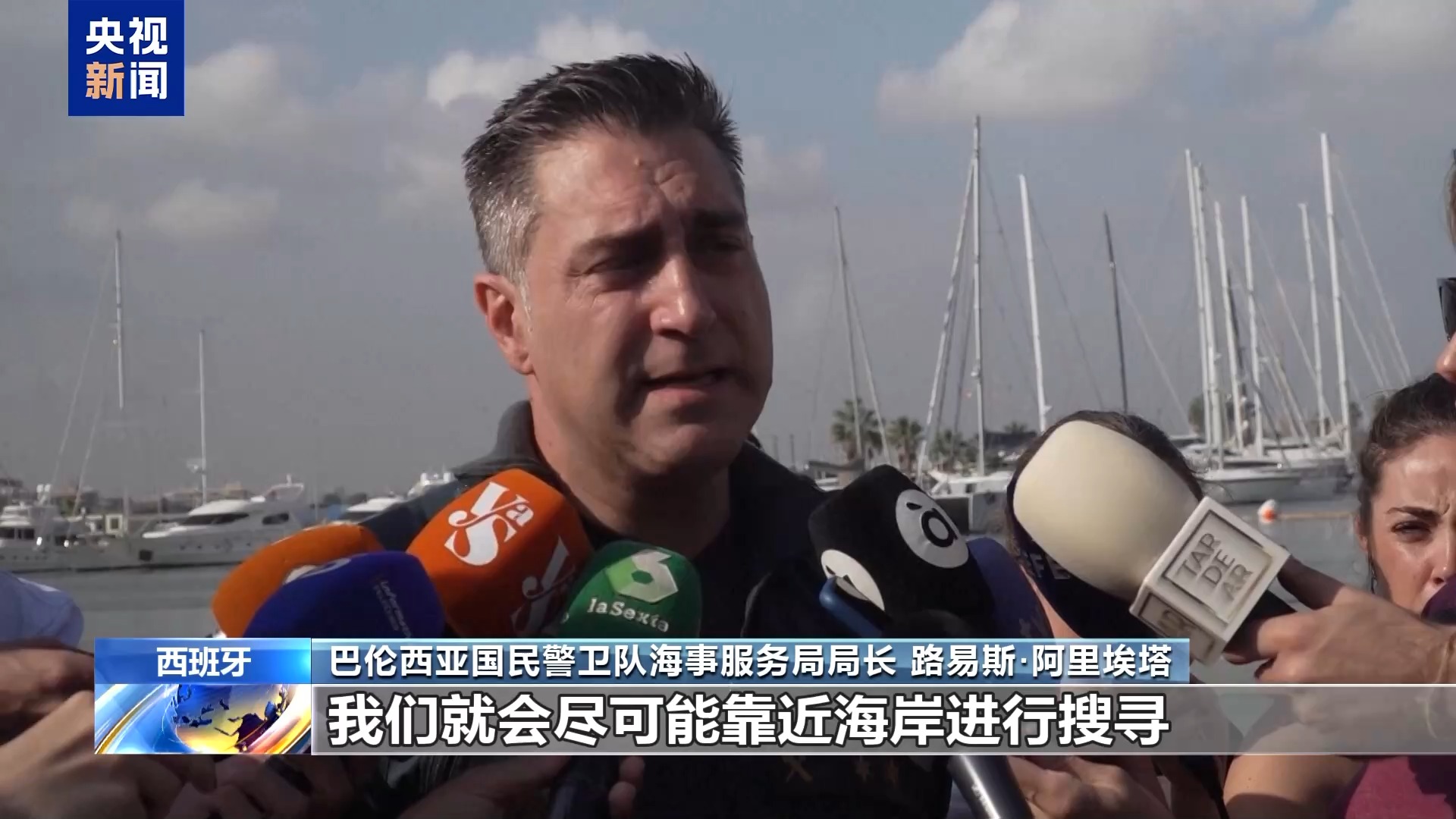 巴伦西亚国民警卫队海事服务局局长路易斯·阿里埃塔:只要条件允许,我们就会尽可能靠近海岸进行搜寻。目前大概有50到100人参与搜救,包括自愿为搜索任务提供协助的志愿者们,他们几乎全天24小时持续工作。