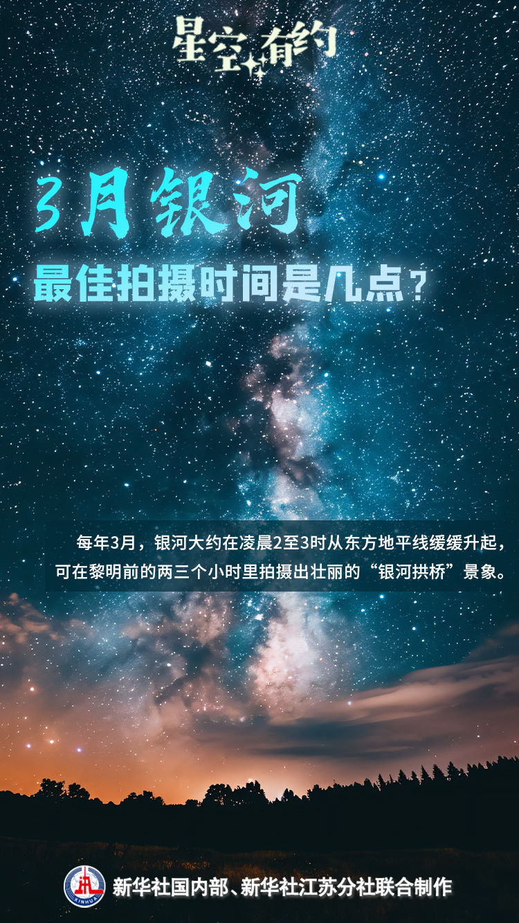 中国科学院紫金山天文台科普主管王科超介绍,银河自古为人熟知,在古代人们以天汉、星汉、天河等名称来称呼它。事实上,这条“天河”由上亿颗恒星构成,虽然一年四季都可以被看见,但在不同季节、不同纬度以及夜间的不同时段,银河会呈现出不同的形态。“每年3月,银河大约在凌晨2至3时从东方地平线缓缓升起,呈低矮的拱桥状。这一时节,可在黎明前的两三个小时里拍摄出壮丽的‘银河拱桥’景象。”
