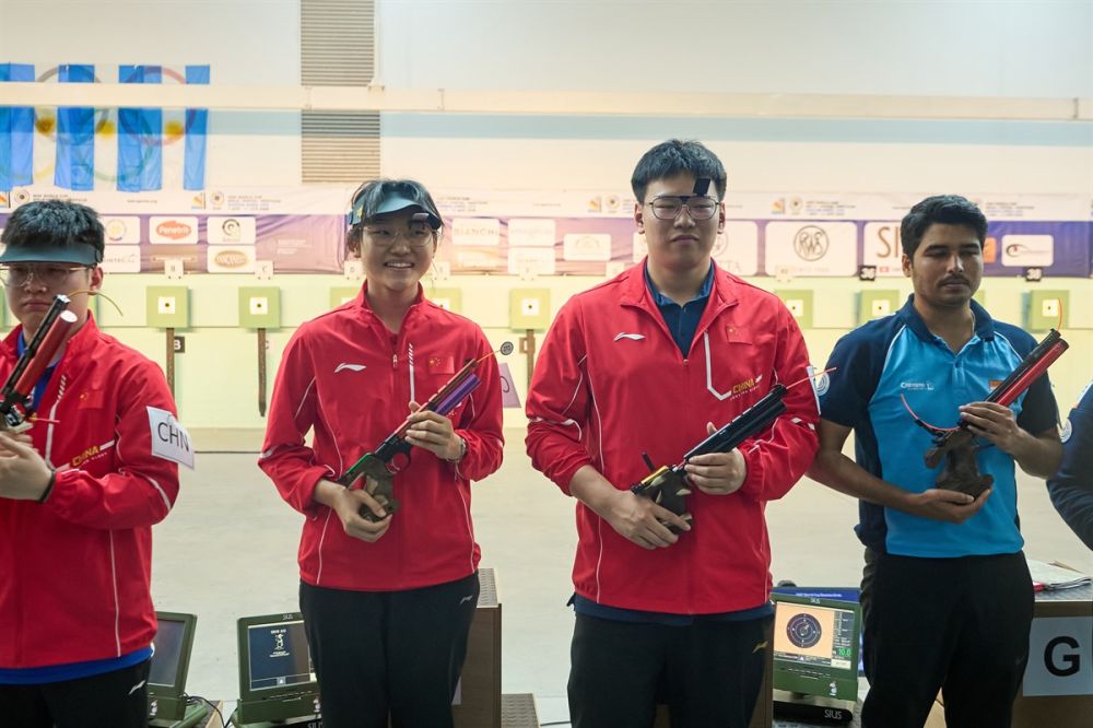 10米气手枪混合团体资格赛中,中国队的两对组合张益梵/马千珂和胡凯/姚千寻排名前两位,两位男选手胡凯和张益梵发挥更为稳定,两人均打出293环的成绩,帮助中国队提前锁定了冠亚军。