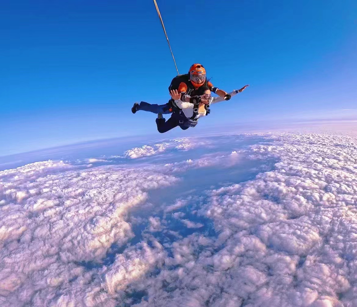 游客从3000多米高空纵身一跃,体验时速200公里的自由落体,沉浸式解锁高空翱翔的独特乐趣,换个视角俯瞰平沙的田园风光与滨海美景。