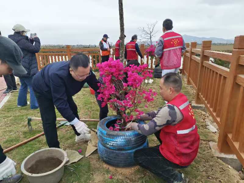 “退伍不褪色,敢啃‘硬骨头’”,是刘剑平的坚守。在基层治理中,他传承军人优良作风,冲锋在前、破解难题。围绕“百千万工程”,他多次组织现场勘察、研讨方案,成功争取 188株樱花树苗,打造“中国红樱花主题公园”,为社区注入文旅新活力;近两年来,牵头开展10余场义务植树活动,种植苗木2000余株,绘就社区生态新画卷。