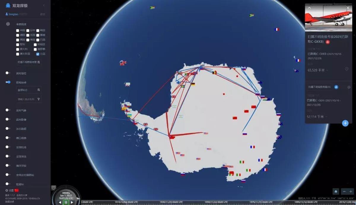 那么,这次比利时科考站的疫情影响会有多大?武汉大学中国南极测绘研究中心教授、博士生导师艾松涛认为,需要引起各国高度重视。艾松涛团队研发的“双龙探极”平台显示,有两架巴斯勒飞机于2021年11月10,12月14、12月23日到访了比利时伊丽莎白公主站,随后又陆续抵达了多个南极站点。