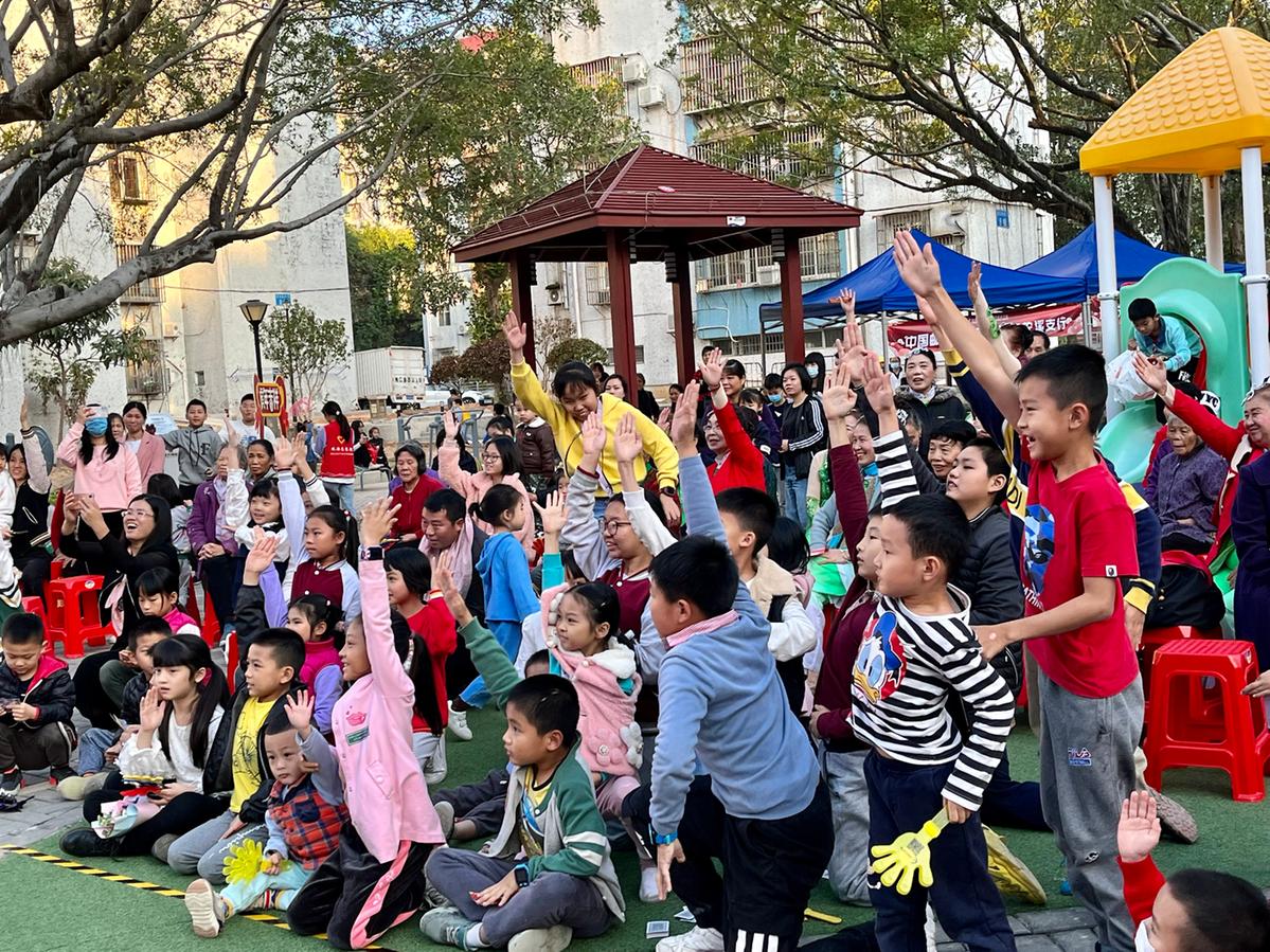 此次睦邻活动以“公益集市+公益汇演”两大板块组成。当天14时,集市摊位的各位“摊主”按时集合并迅速按社工的安排支好自己的摊位,现场主办方还设有社区便民咨询、全科义诊和金融防诈骗知识宣传摊位。15时,爱心公益集市准时开市,4个闲置转让摊位,整齐地摆放各类书刊、文具用品、毛绒玩具及各种小零食,化身摊位“小掌柜”的孩子们个个都热情高涨,使劲吆喝着招揽生意,推销着自己的“宝物”;4个美食摊位则传来阵阵食物香气,冰糖葫芦、咖喱鱼蛋、卤蛋……各式美味食物好不诱人!