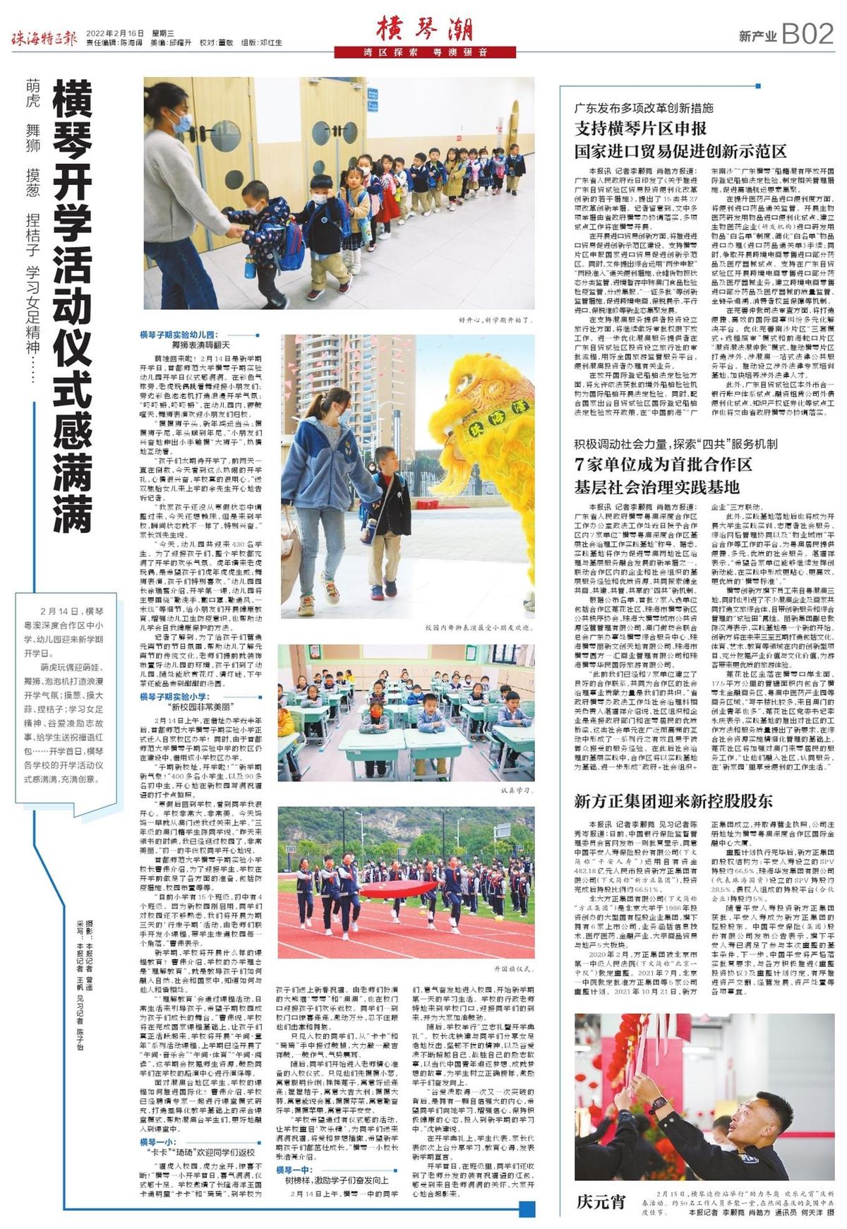2月14日,横琴粤澳深度合作区中小学、幼儿园迎来新学期开学日。