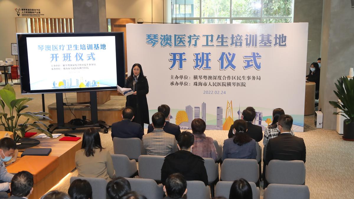 2月24日,琴澳医疗卫生培训基地开班仪式在横琴粤澳深度合作区人力资源产业园举行,培训基地首期培训班同日开课。此次培训由横琴粤澳深度合作区民生事务局主办,珠海市人民医院横琴医院承办,横琴粤澳深度合作区民生事务局、珠海市人民医院医疗集团领导以及培训基地导师、学员参加了开班仪式。
