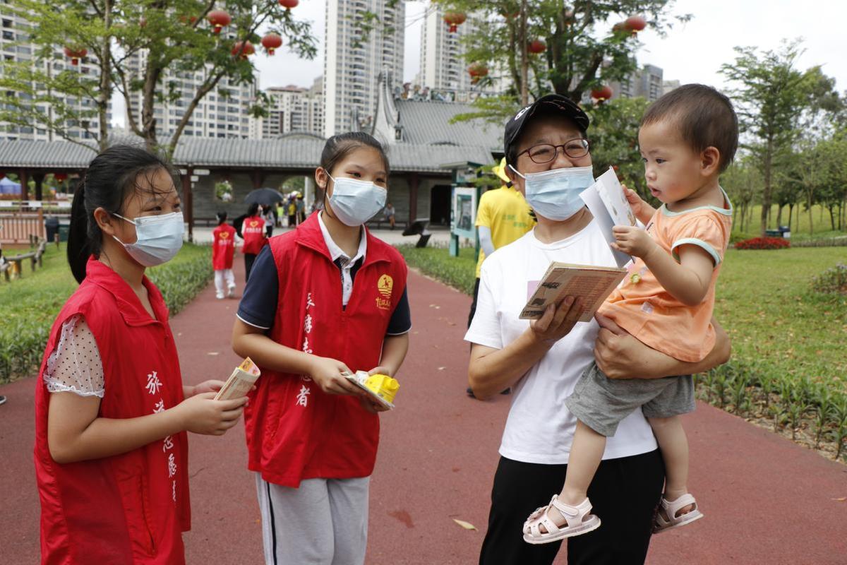 记者在香山湖公园看到,虽然人数较多,但大家都能遵守秩序,扫码、测温,佩戴口罩进入公园,也没有乱扔垃圾、烟头的现象发生。由40名学生组成的珠海海外旅游有限公司旅游志愿服务分队,在公园正门、步道起点以及各主要入口,利用宣传举手牌和册子,向游客和市民宣传文明旅游、游览中不随地乱丢垃圾、不大声喧哗、不追逐打闹,一定要尊重各地民俗习俗。