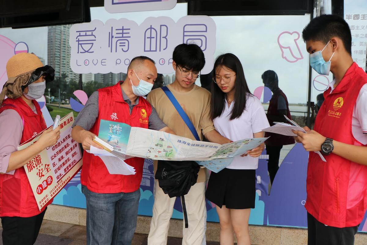 4日,进入端午小长假第二天,多支旅游志愿服务分队以“文明旅游 从我做起”和“诚信旅游”为主题,在香山湖公园、金湾平沙红旗中心广场、以及圆明新园开展宣传文明旅游活动。