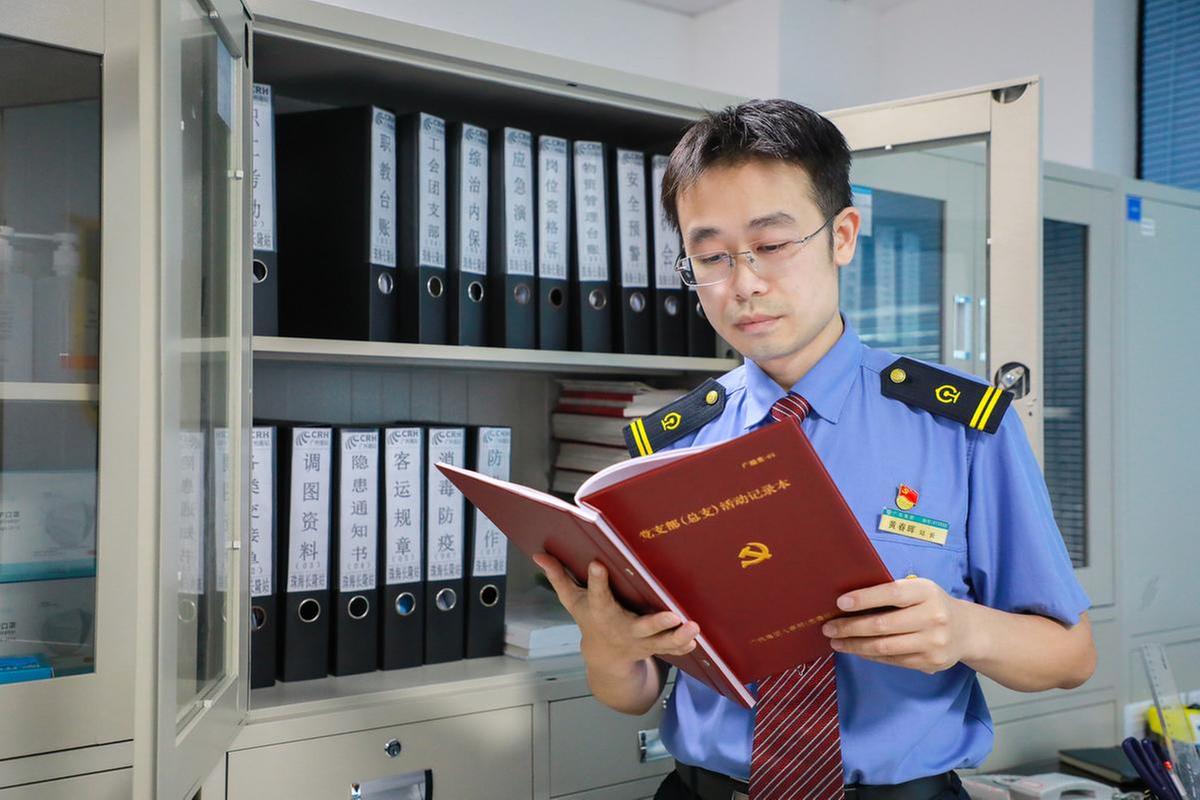 不畏艰险、履职尽责,他以此作为人生目标,努力为胸前的党员徽章和“铁路人”的胸章增光添彩。平日里,旅客在哪儿,工作就在哪儿。如果旅客在珠海长隆站的客运值班室探个头,黄春晖便会立即迎上去。在车站的客运员眼中,这位站长有些特别。他从不在自己安静的办公室工作,而是直接把办公桌搬到候车厅旁人来人往的客运值班室。旅客有什么需要,黄春晖可能是最快处理的那一个。“急旅客之所急,解旅客之所难,心里装着旅客。这不仅是身着铁路制服的我们的承诺,也是党员坚持人民立场的要求。”他总是提醒自己和车站客运员团队,要坚持不懈为旅客办实事做好事。