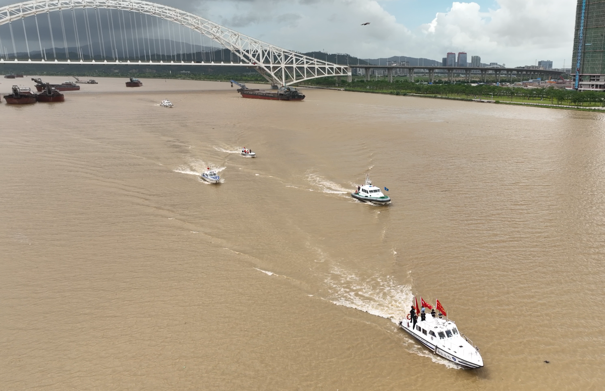 上午10时整,按照巡航计划,联合执法船队以“边检4483”号公务船艇为首船,成编队沿马骝洲水道、磨刀门水道经横琴大桥、横琴二桥、洪鹤大桥至洪湾中心渔港,执法范围覆盖内港水域、马骝洲水域、横琴大桥一带航道、码头港区等区域。