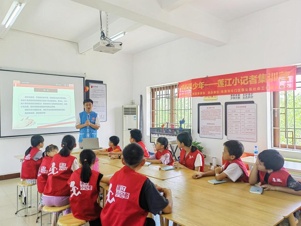 为给乡村孩子提供展现自我、参与社会实践的平台,促进青少年素质提升,近日,由斗门区莲洲镇委农村办公室指导、莲江村村民委员会主办、斗门区蒲公英社会工作服务中心承办的莲江村小记者第一期集训营启动。