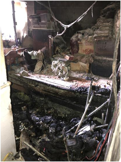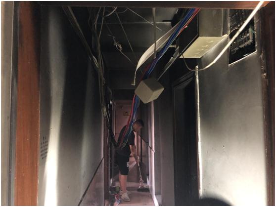 接到消防部门反馈的情况后,拱北街道综合行政执法办立即派出执法人员到火情现场调查。经查,失火房屋是一处“一套改多套”的违法装修“房中房”。房主将原有的一套120平方米房屋改为5个套间出租,起火的是其中一个套间。执法人员现场勘查发现,失火房间的墙壁已被熏黑,房内物品悉数烧毁,走廊上因改装电路而私拉的电线也从房顶脱落悬在半空中,安全隐患极其严重。