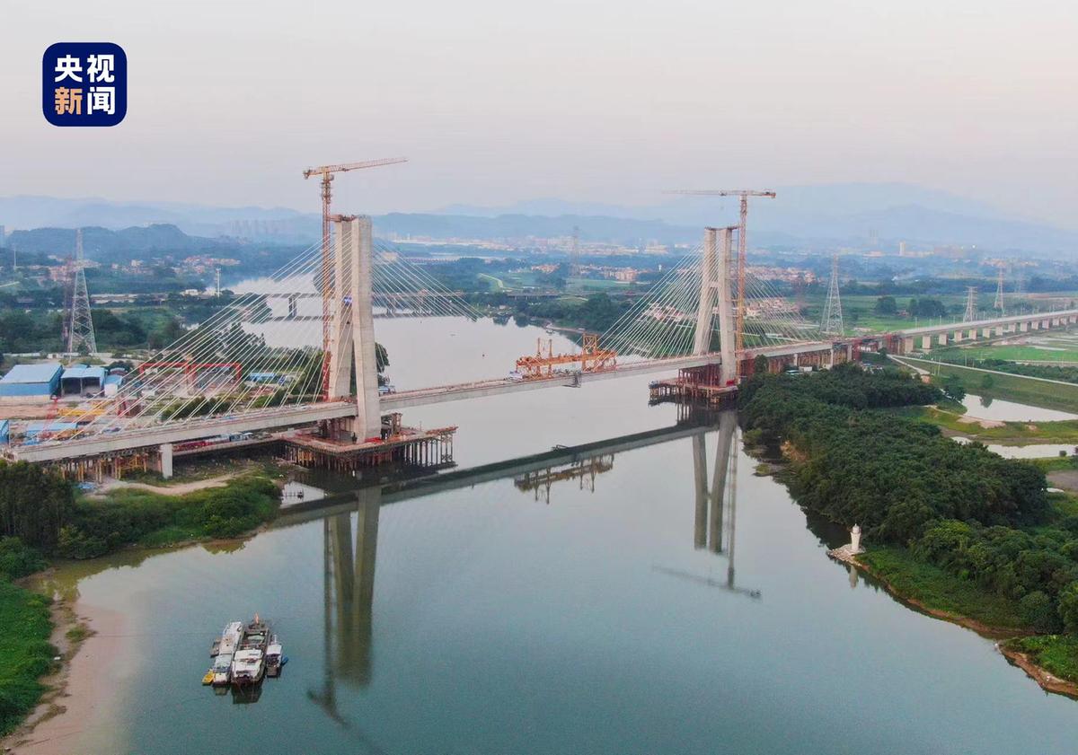 据了解,广汕高铁是广东省重点工程之一,起自广州新塘站,终至汕尾站。增江特大桥为双塔双索面混凝土斜拉桥,是广汕高铁关键控制性工程。大桥位于广州市增城区石滩镇境内,全长2569.480米,桥梁主跨260米跨越增江水道,主塔采用高100米H型桥塔。主桥在全世界高速铁路斜拉桥建设中首次采用混凝土梁节段预制胶拼法施工,利用混凝土梁体自重大的特点,克服一般斜拉桥受空气流动性影响产生涡振现象,同时采用大型剪力键,提高梁体拼接缝的抗剪力性能。节段梁拼装通过纵向粗预应力钢棒与黏结胶有效结合,将各节段梁串联成整体而成桥,加大了梁体的刚性,降低了斜拉桥柔性变化特点,提高了高速铁路行车舒适性和安全性。
