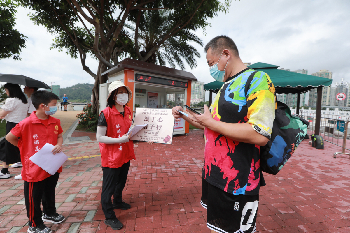 为做好国庆节期间文明旅游指引工作,进一步宣传文明旅游和低碳出行,引导游客市民做好疫情防控,遵守公民文明守则,营造良好的旅游氛围,在市文化广电旅游体育局指导下,市旅游志愿服务总队于10月1日组织25名志愿者在野狸岛公园开展2022年珠海市国庆节文明旅游志愿服务活动。