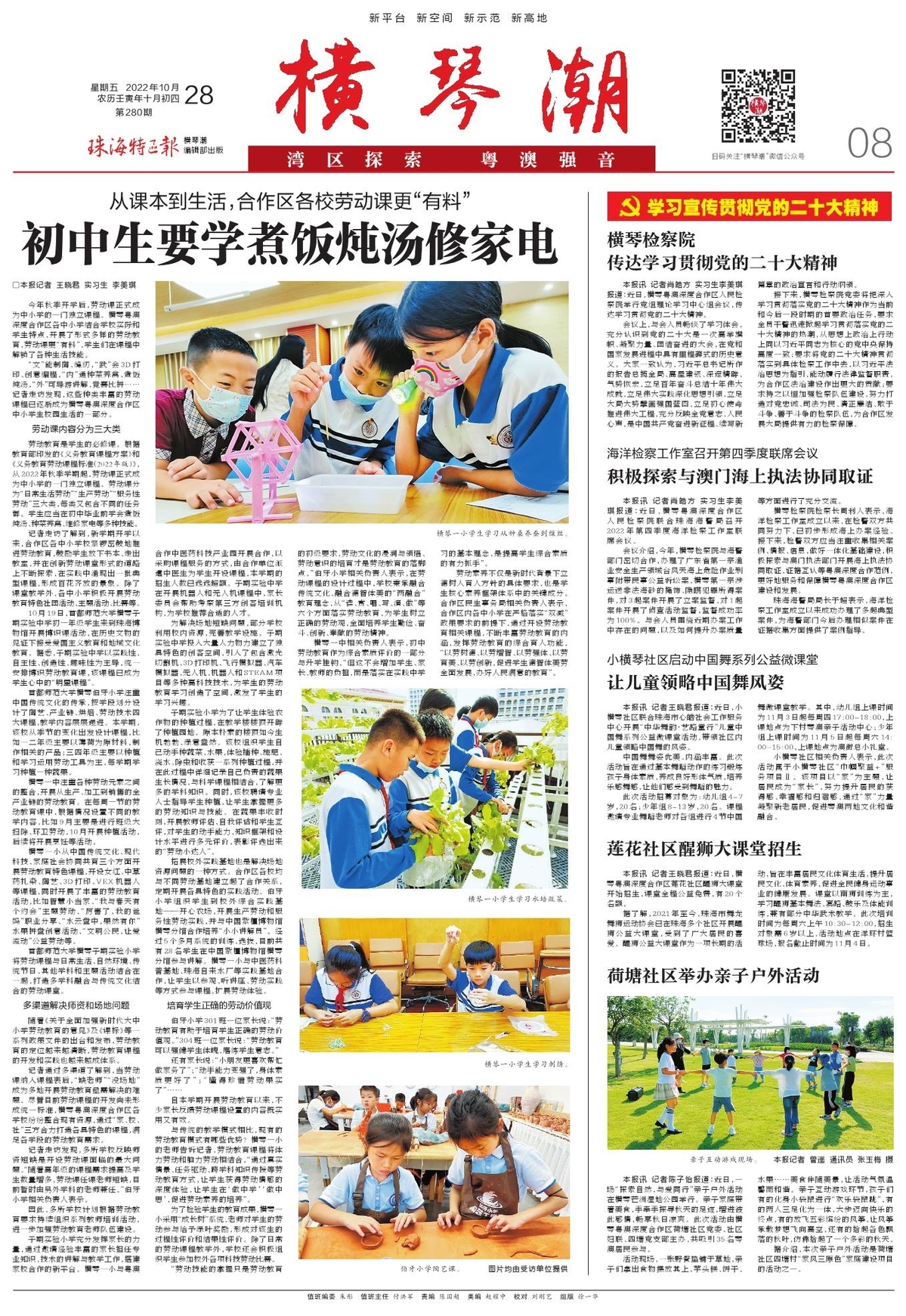 横琴潮第280期|从课本到生活 合作区这些学校的劳动课超“有料”