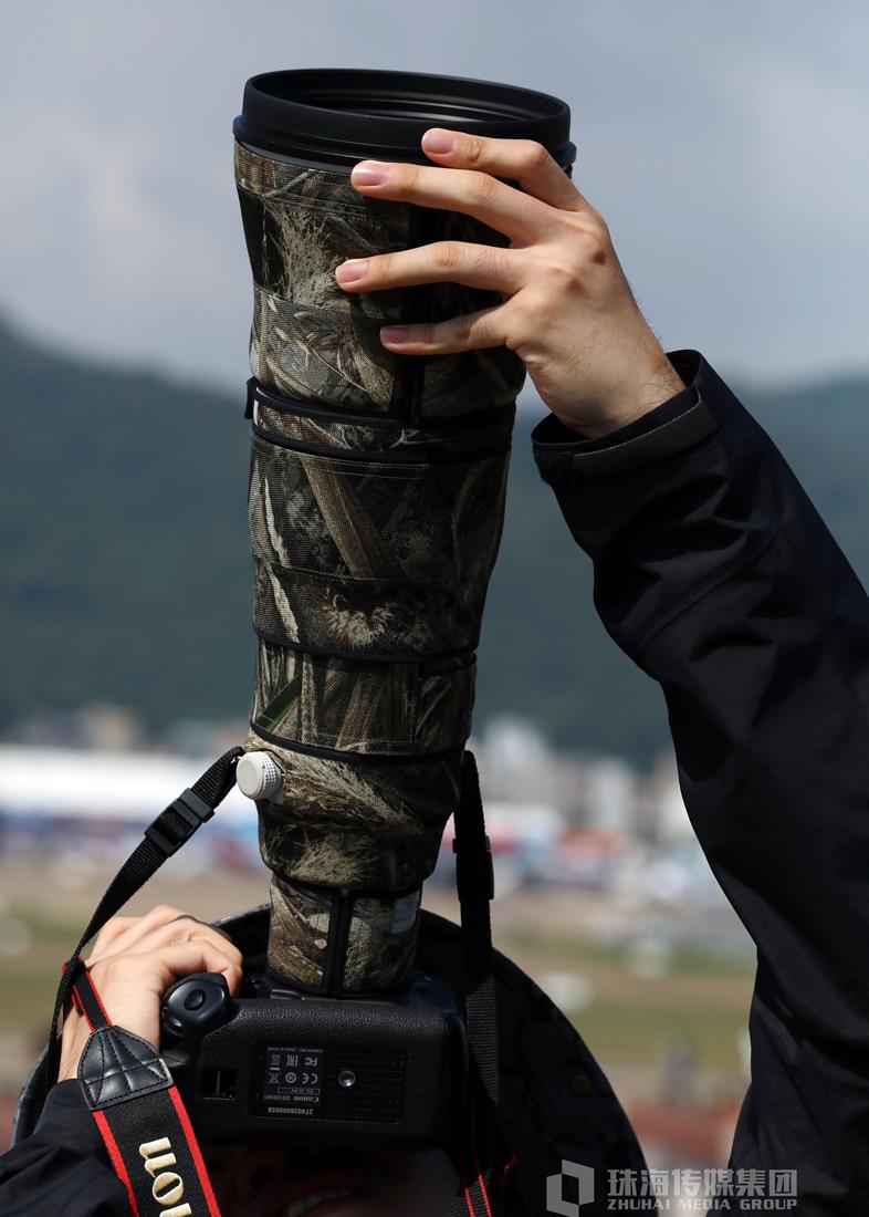 航展拍摄对于这群摄影“发烧友”来说是超负荷的体力活,他们中很多人自费从外地来到珠海,扛着昂贵的摄影器材,从清晨蹲守到天黑。