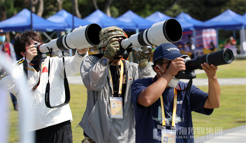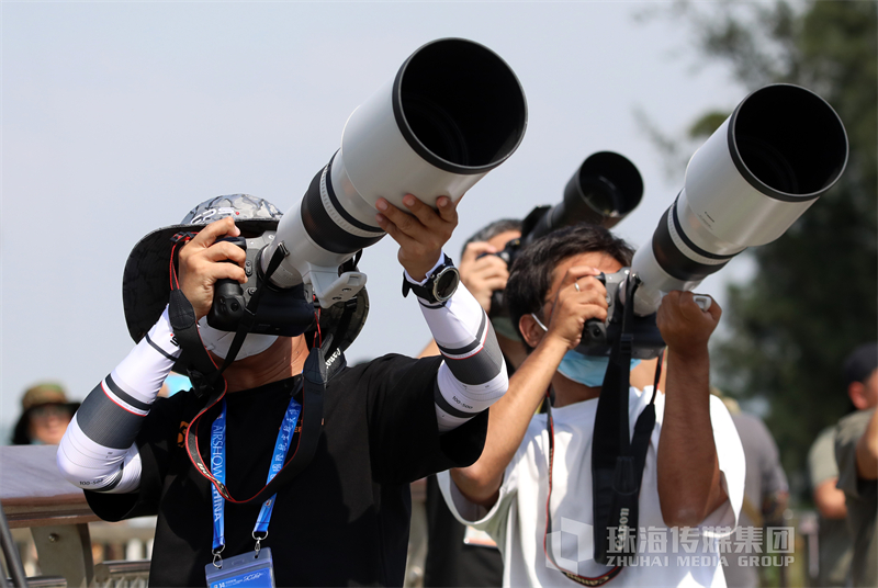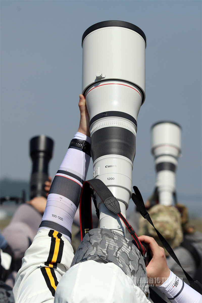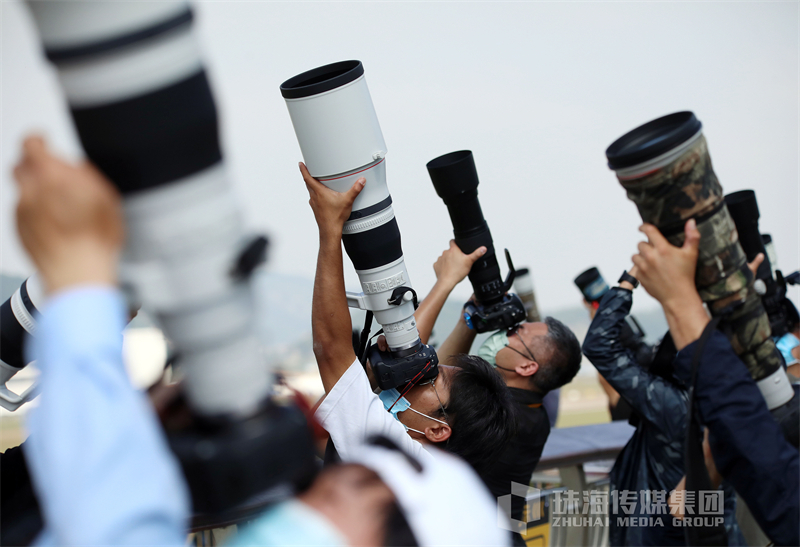 航展现场,最强氛围组莫过于拿着长枪短炮对着天空动作和角度整齐划一的他们!