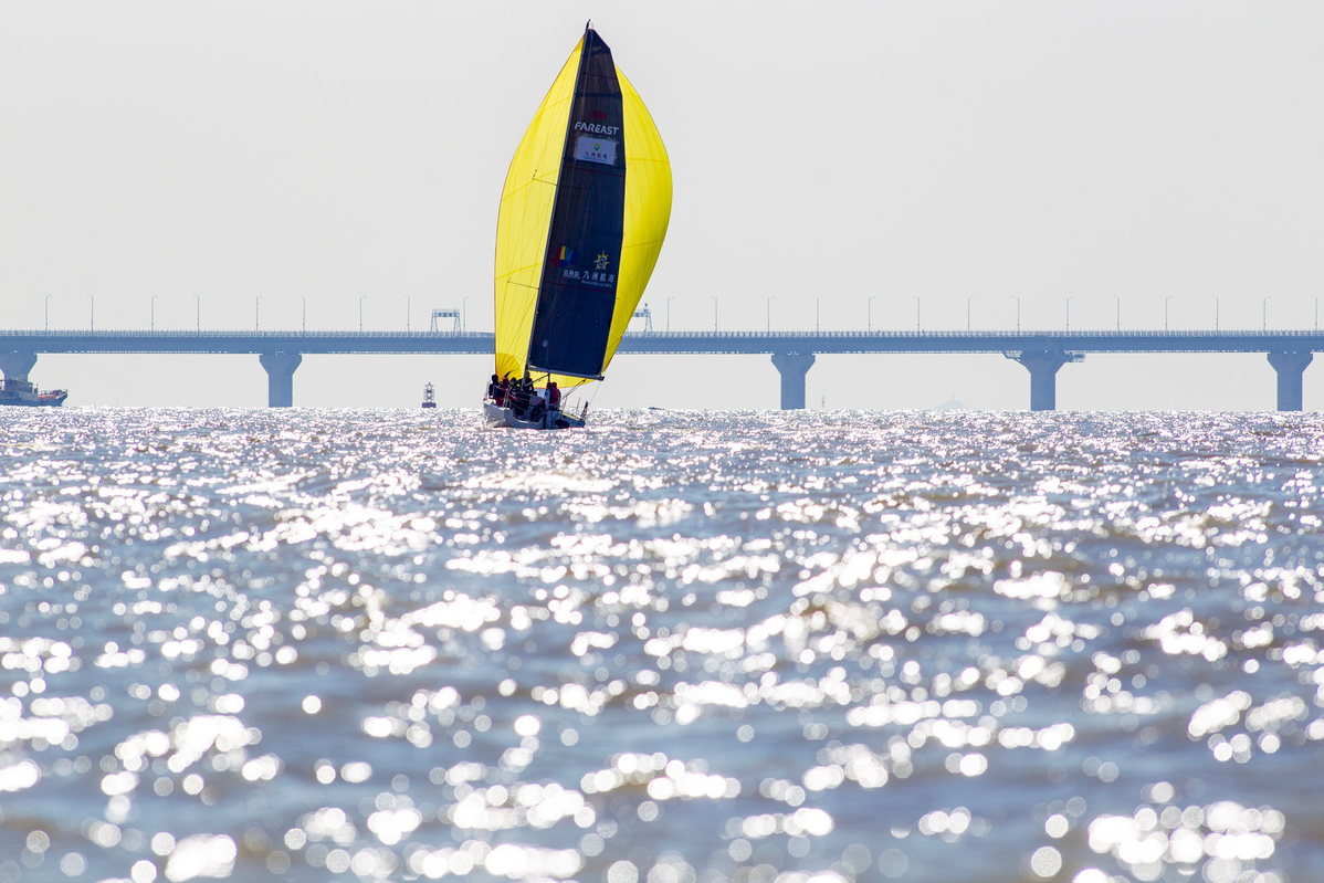 来自粤港澳大湾区的精英赛队沿着港珠澳大桥,一路乘风破浪,在海滨泳场、香炉湾等海域竞逐。一艘艘帆船与阳光、蓝天、海浪、大桥共同组成这片海域上最动感、最靓丽的景色。