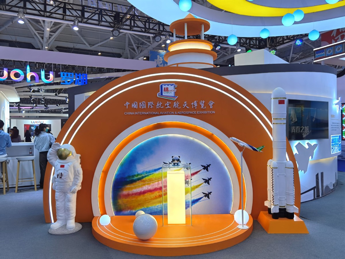 在中国航展展示区,大型喷气式民用飞机C919模型、长征系列运载火箭模型、吉祥物“星宝”等展品瞬间将观众的记忆拉回今年的11月,第十四届中国国际航空航天博览会在珠海盛大举行。伴随着我国航空航天及国防事业的蓬勃发展,中国航展现已成为集贸易性、专业性、观赏性为一体,代表当今世界航空航天科技主流的国际盛会,成为一张闪亮的“国家名片”。蓝天盛会体现珠海品牌、珠海价值,彰显中国力量、中国精神。