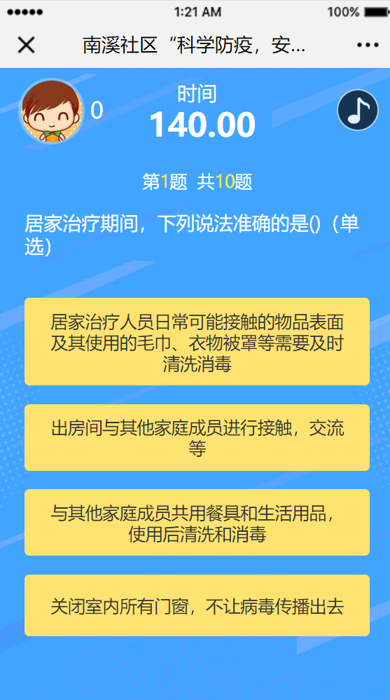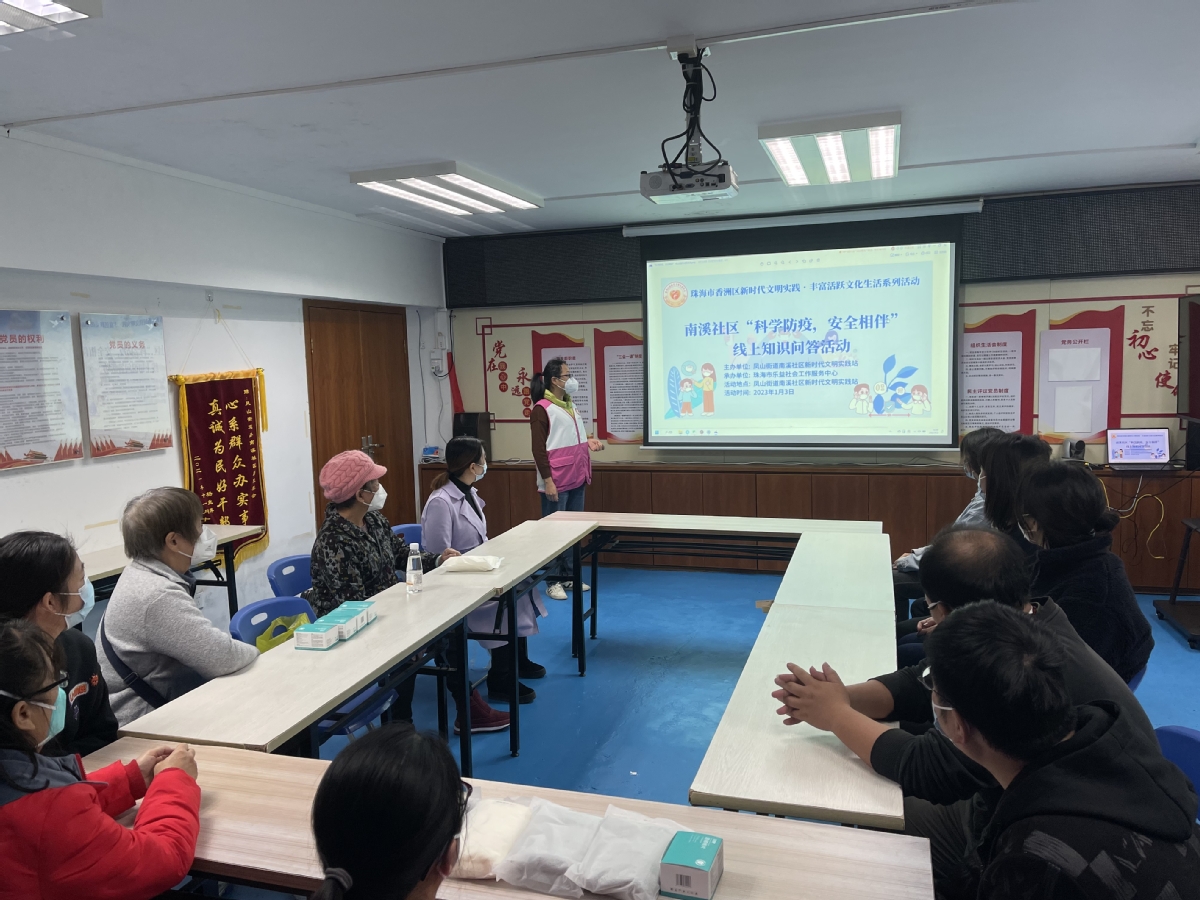 为普及疫情防控和卫生健康知识,引导辖区居民们做好疾病科学防护,2022年12月30日-2023年1月3日,凤山街道南溪社区党委、社区妇联、社区新时代文明实践站联合珠海市乐益社会工作服务中心开展了“科学防疫安全相伴”线上知识问答活动,吸引了近百位居民参与其中。