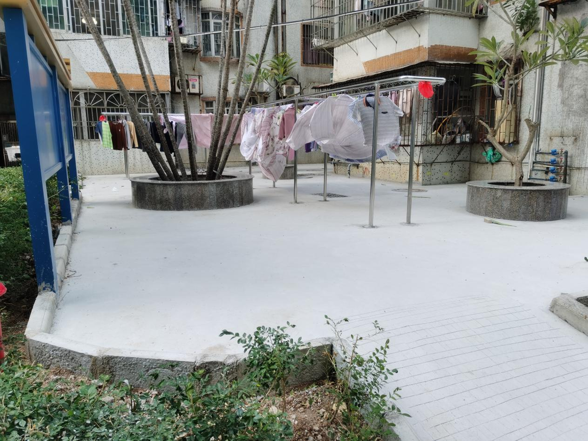 为切实解决小区居民晾晒困难的问题,给居民生活提供便利,昌平社区党委多次组织驻点团队、工作人员、施工人员、居民代表等到现场进行实地勘查,发现小区2栋周边有块约432平米的卫生死角地带,杂草丛生、垃圾随处堆放,不仅人行道狭窄,泥土裸露,而且雨天路面积水严重,容易滋生蚊虫,给居民生活带来不便,周边住户也十分希望将这块脏乱差的卫生死角改造。昌平社区党委组织召开居民代表议事协商会议,通过向街道文明办申请文明城市建设经费,利用富丽阁卫生死角地带,将其路面硬底化处理,增设便民共享晾衣架,改善小区环境,解决存在的安全隐患。经过20天的工期,此处的“环境黑点”转化成了“美化便民晾晒区”,不仅解决了小区的“卫生死角”,还解决了小区居民的晾衣“难事”。