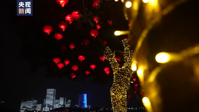 在福建厦门,城市主干道也披上了节日的新装,夜晚被红灯笼和灯带点亮。在厦门海沧,灯光工程以“游园、游湖、游海”为主题,形成了4.5公里的最佳观赏带。两棵大榕树,被灯串装饰得宛如夜晚中的火树银花。