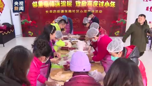 小年前夕,丰台长辛店街道朱家坟南区社区工作人员、志愿者陪老人们包饺子、话家常,为老人们题写福字和春联,用珠串编织可爱的兔年吉祥物,表达新春祝福。