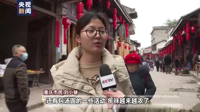 重庆市民 刘小楚:看到了舞狮表演,还有包汤圆那些活动,年味越来越浓了,感到新的一年会越来越好、欣欣向荣的气象。