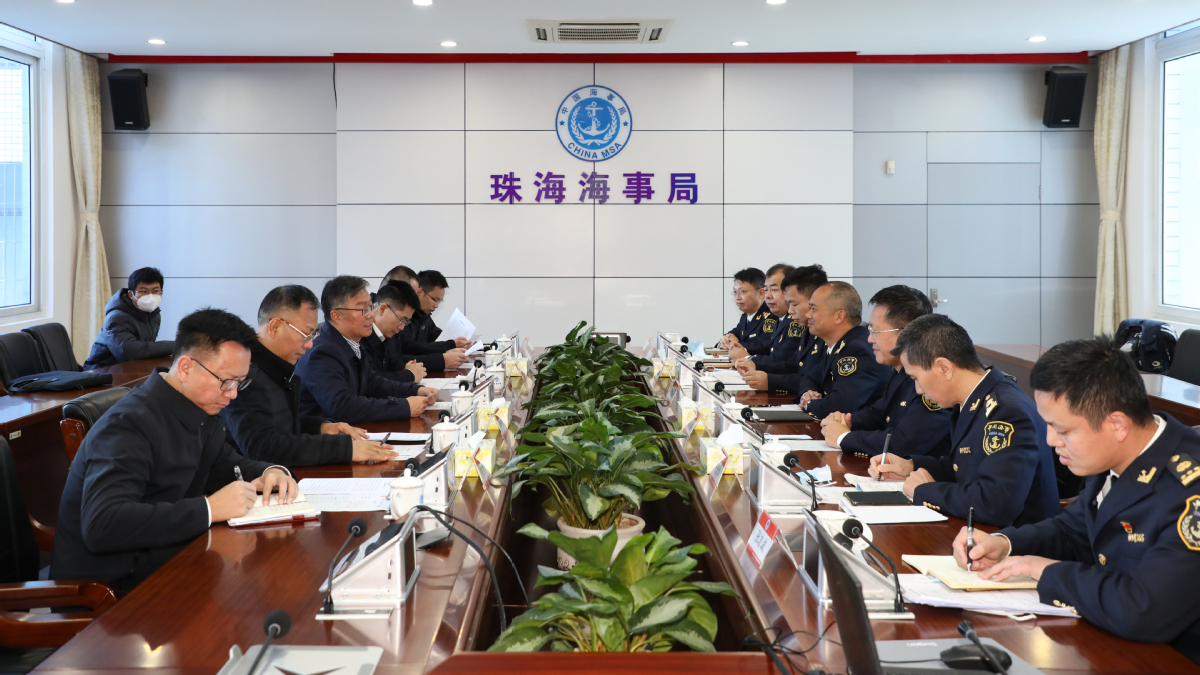 在珠海海事局,梁耀斌一行听取了局长钟锡泉对珠海海事局过去一年工作情况的介绍。珠海海事局承担着珠海辖区6000多平方公里海域和700公里内河通航水域的水上安全监管和防止船舶污染水域管理职责。2022年,辖区船舶安全进出港26.1万艘次,国际航行船舶进出口岸2009艘次,处置海上险情93宗,成功救起262人,人命救助成功率达到97.76%,为保护辖区人员生命和财产安全做出大量工作。
