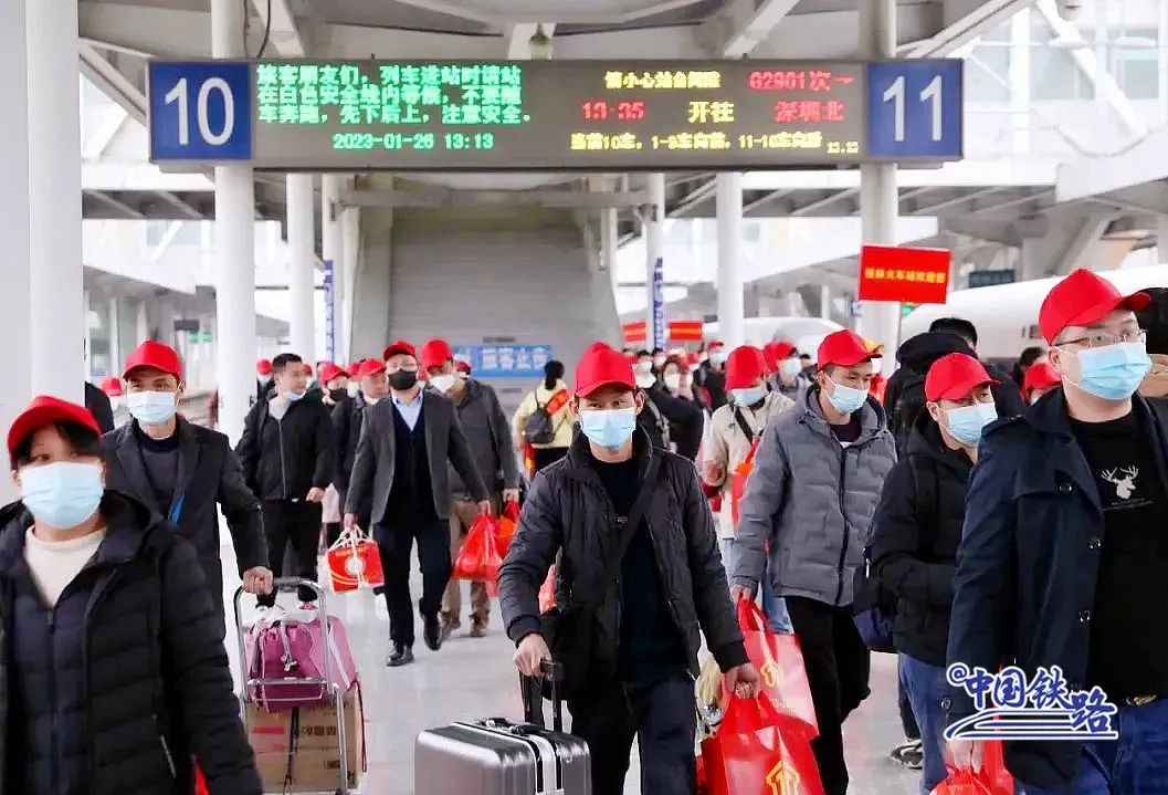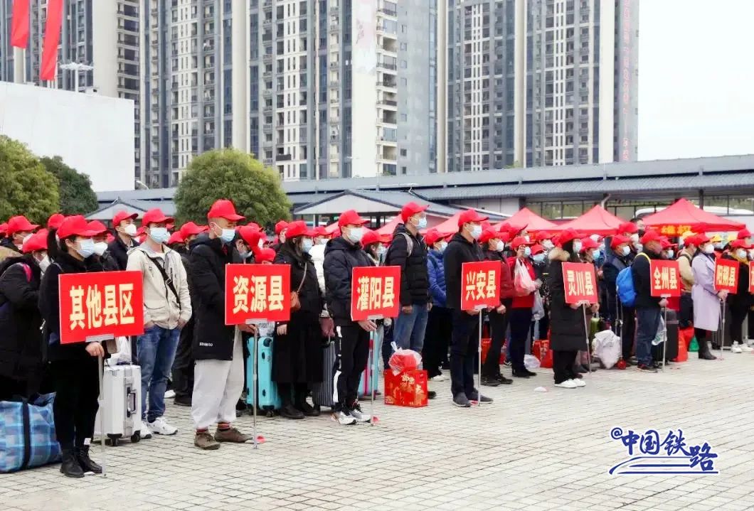 1月26日13时35分,600名务工人员搭乘首趟“点对点”返岗务工专列,从桂林北站出发,前往广东深圳返岗复工。