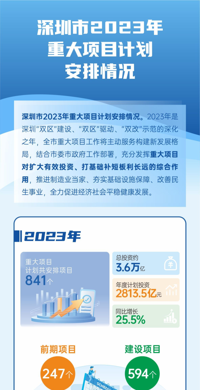 2023年是全面贯彻落实党的二十大精神的开局之年,是实施“十四五”规划承上启下的关键之年。今年,深圳将重大项目谋划与坚持制造业当家、推动基础设施高质量发展、补齐民生事业短板等紧密结合,安排一批具有牵引带动作用的重大项目。那么,今年深圳将推动哪些重大项目?有没有你关注的工程?一张图带你了解今年的841个重大项目。