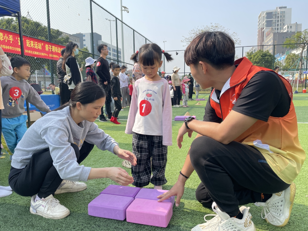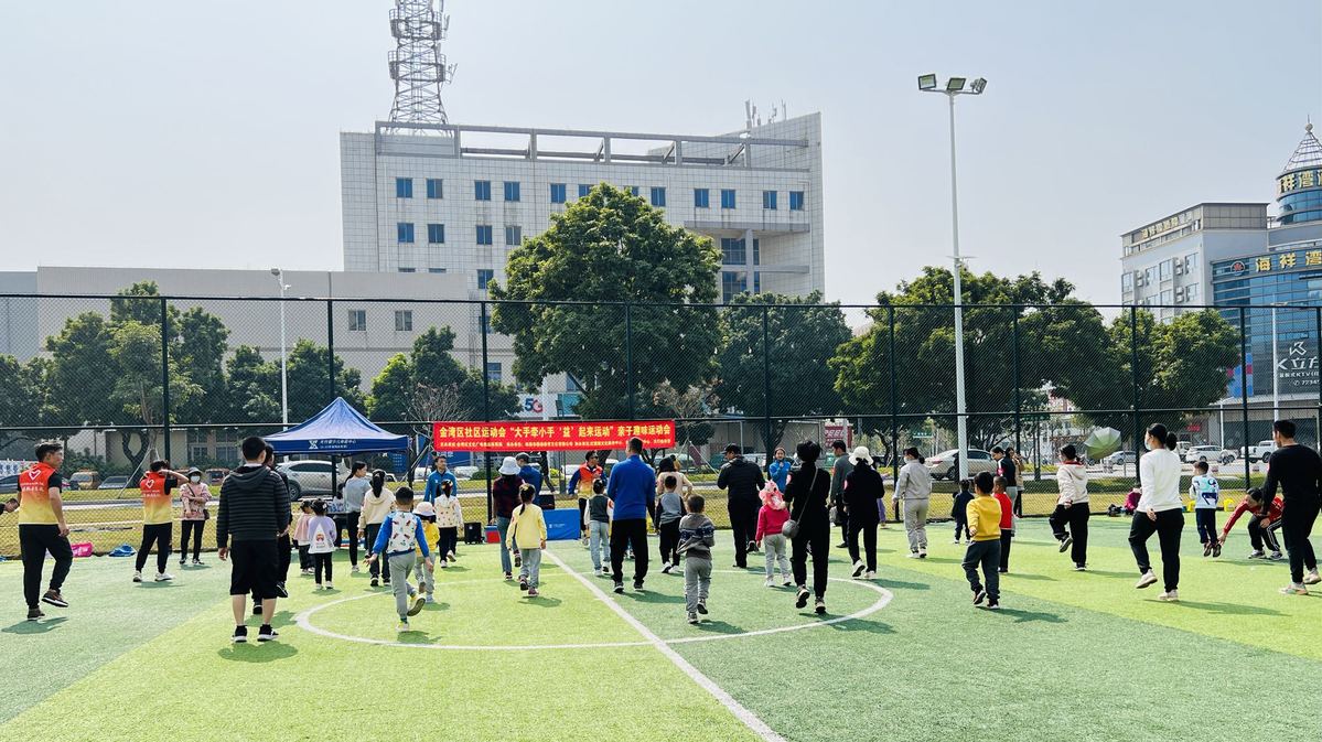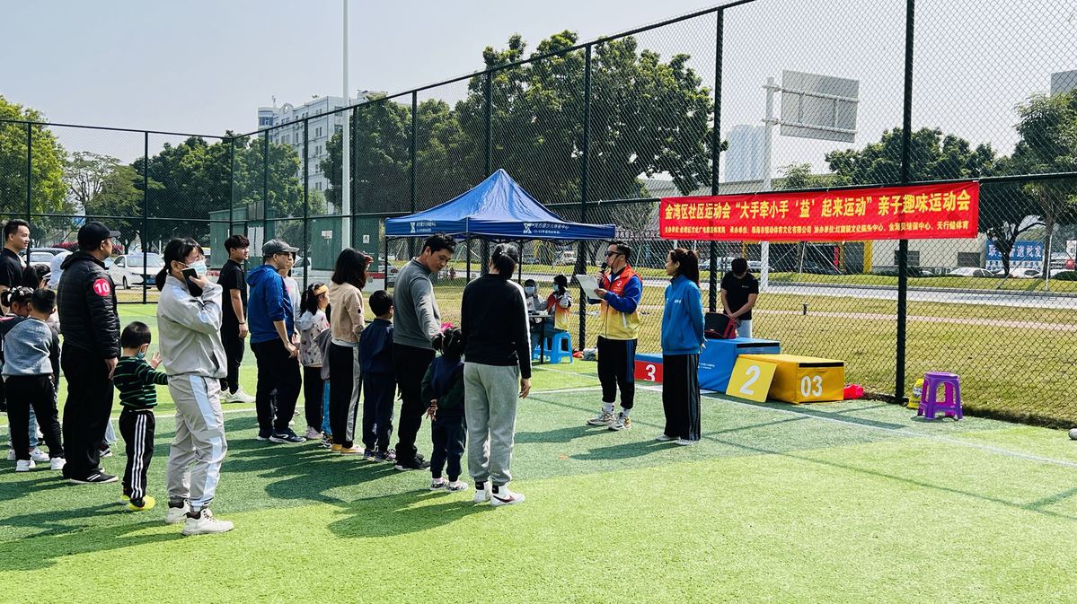 2023年2月26日下午,珠海市金湾区“大手牵小手 ‘益’起来运动”亲子趣味运动会在红旗镇南翔路公园足球场拉开帷幕。来自红旗镇的20余个亲子家庭参与其中,一同体验运动挑战与健康成长的快乐。据悉,本次运动会是金湾区社区运动会系列活动之一。
