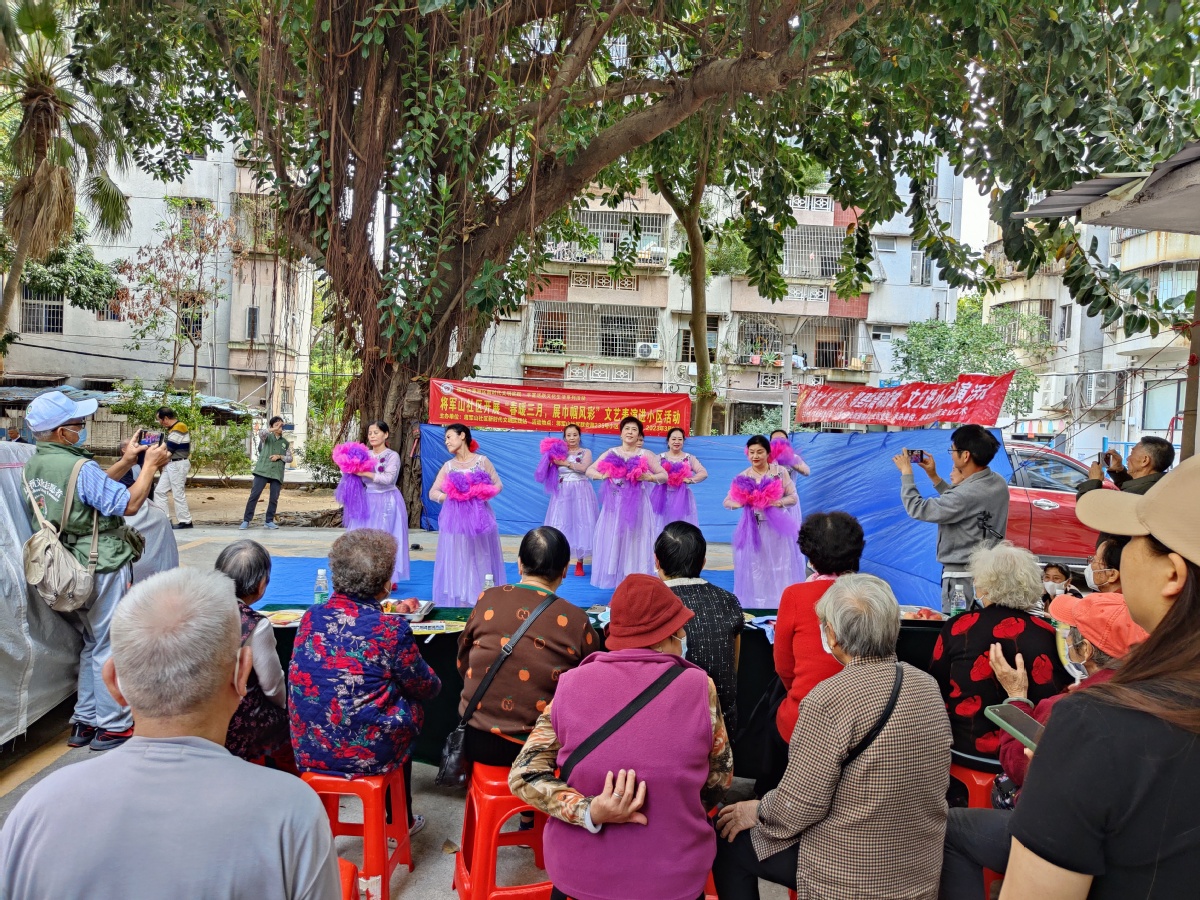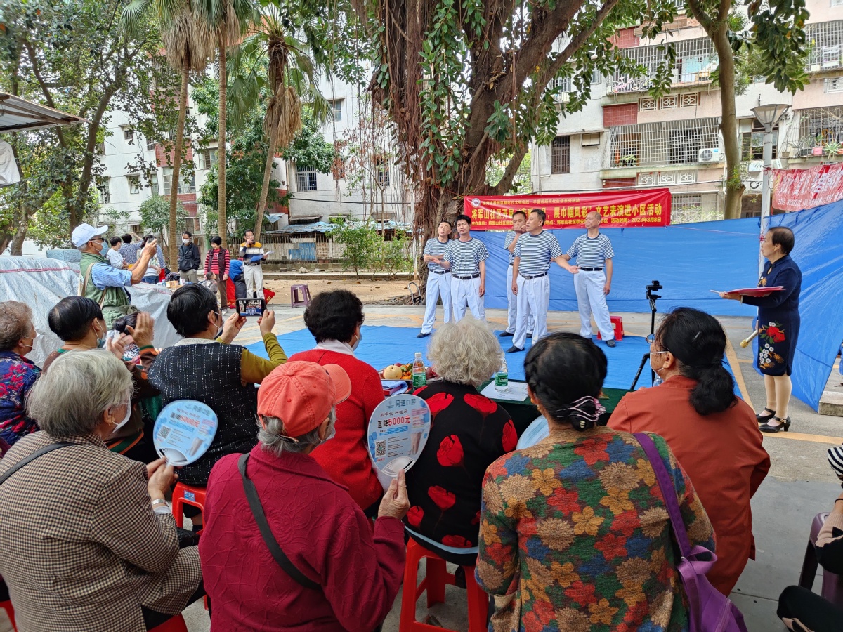 3月8日下午,拱北街道将军山社区新时代文明实践站联合将军山社区金山艺术团共同组织开展“文艺表演进小区”活动第三场。该系列活动深受小区居民喜爱,活动一开始,居民便纷纷前来“占位”看演出。