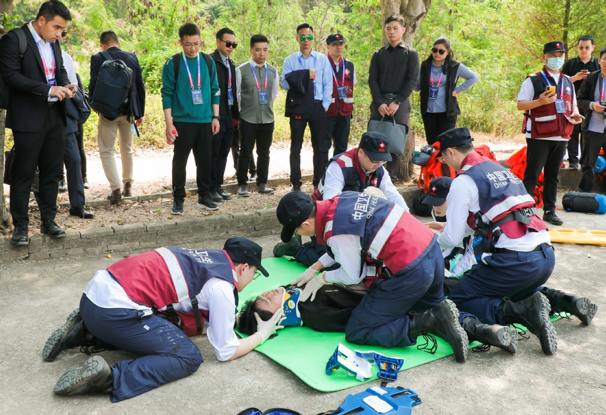 当天,全市13支医学救援队围绕理论考核、紧急医学救援基本技能、野外生存能力、个人携行装备配置等科目展开激烈角逐。其中,急救基本技能考核包括心肺复苏操作、外伤类处置、野外行军等科目;野外生存能力考核包括自我生活保障和营地建设。各队队员携带30公斤个人装备徒步行进,全程约8公里,途经红树林栈道、山间沙土路、城市公路、建设施工路段。