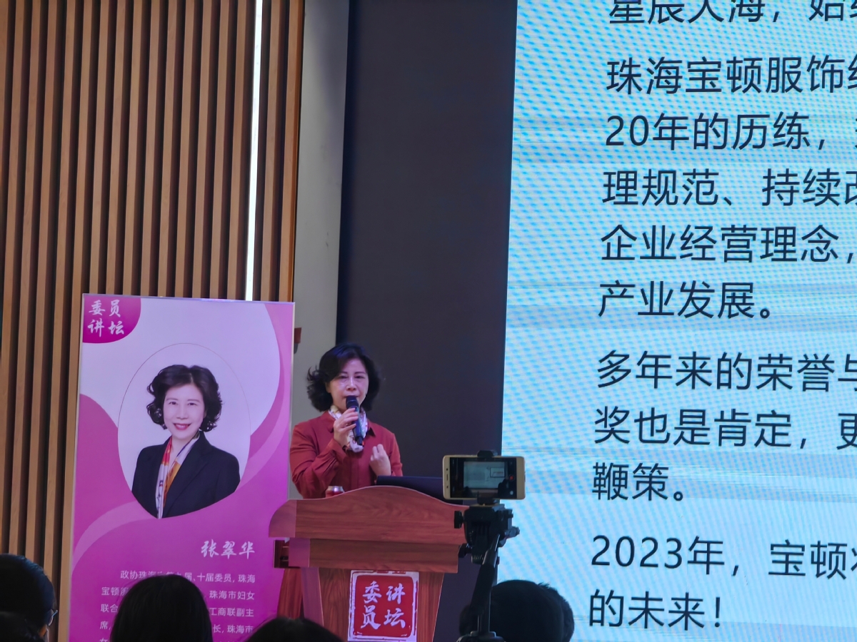 活动中,张翠华以创业故事为切入点,结合自身经历和多年参与公益项目的心得,带来“她故事、她力量、她担当”的主题演讲。张翠华表示,女性具有蓬勃强大的生命力,在新时代中应当敢于拼搏、勇于担当,不断扩展女性成长的边界,充分彰显女性魅力。而作为珠海市女企业家协会会长,张翠华表示:“希望能为更多女性提供创业服务和创业思路,为她们搭建创业平台,让更多女性的发展和成就,成为珠海靓丽的名片。”
