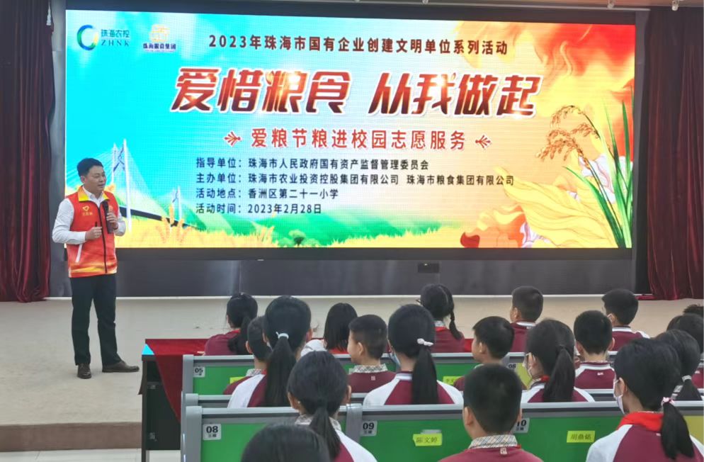 3月23日,记者从珠海农控集团获悉,近期,在市国资委的支持与指导下,农控集团及下属粮食集团联合开展主题为“爱惜粮食 从我做起”爱粮节粮宣传志愿服务,向广大市民宣传节约粮食的文明理念,践行绿色生活,倡导节俭文明新风尚。