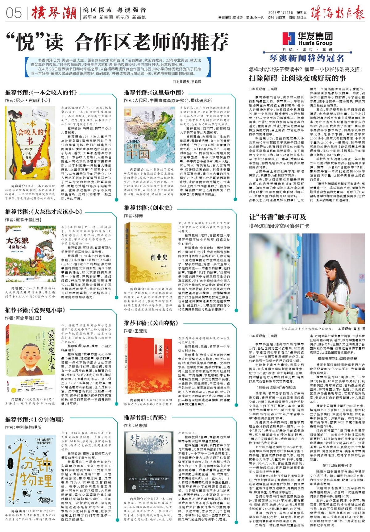 横琴潮|世界读书日来临 ,老师们推荐这些书,邀你“悦”读