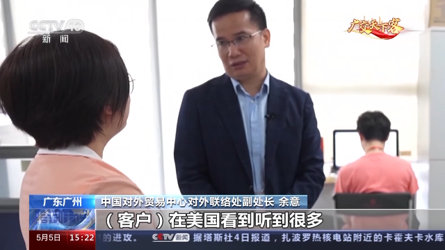 中国对外贸易中心对外联络处副处长 余意:昨天还收到一个邮件,(客户)在美国看到听到很多广交会的报道,他说他准备下一届来。