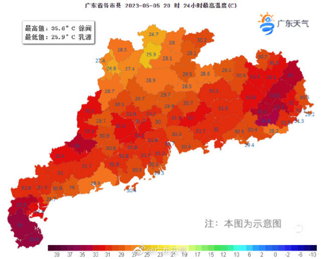 昨日广东全省最高温在徐闻