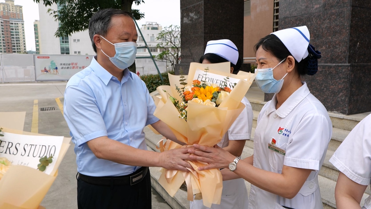“大家辛苦了,向你们表示慰问和感谢。”活动中,苟冰向医院10名护士代表送上鲜花和慰问品,并向大家致以节日的祝贺和崇高的敬意。珠海辉轮针织有限公司还向医院定向捐赠针织衫702件,价值68000多元。