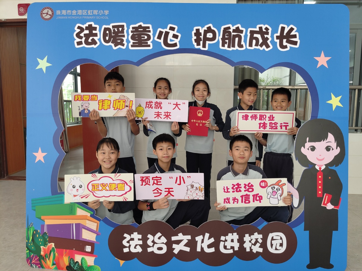 2023年4月27日,由珠海市金湾区司法局红旗司法所、虹晖小学、广东中晟律师事务所联合开展的律师职业体验及法治宣传活动走进虹晖小学,该校250余名学生参加活动。