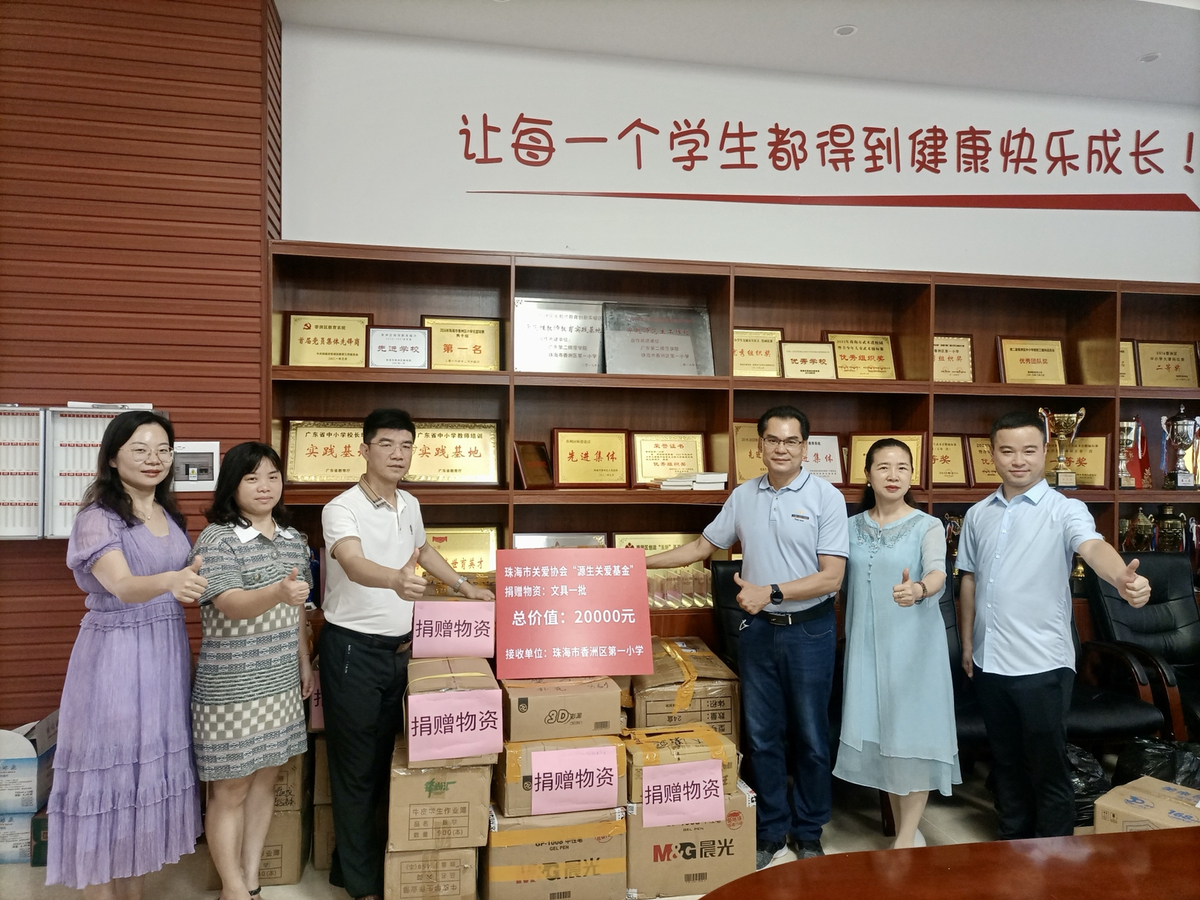 在“六一”国际儿童节到来之际,5月30日,珠海市关爱协会再启动“源生关爱基金”捐赠4.28万元助学善款,为同学们送去节日的问候和祝福。其中,向香洲区第一小学捐赠价值2万元的文具一批;向香洲区云峰小学捐赠乒乓球台6张,价值2.28万元。