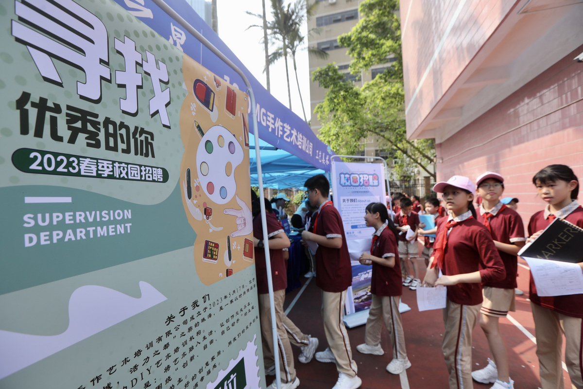 “你有什么特长和爱好?”“要胜任这个岗位,你有哪些优势?”5月31日下午,一场别开生面的校园模拟招聘会在香洲区吉大小学举行,数十家“单位”设摊“觅才”。