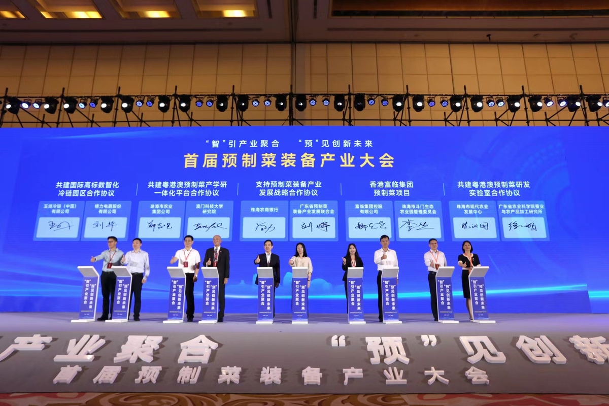 大会举办了重点项目签约仪式,“共建国际高标数智化冷链园区合作协议”“共建粤港澳预制菜产学研一体化平台合作协议”“支持预制菜装备产业发展战略合作协议”“香港富临集团预制菜项目”“共建粤港澳预制菜研发实验室合作协议”5个项目上台签约,充分展示了珠海预制菜产业发展成果。