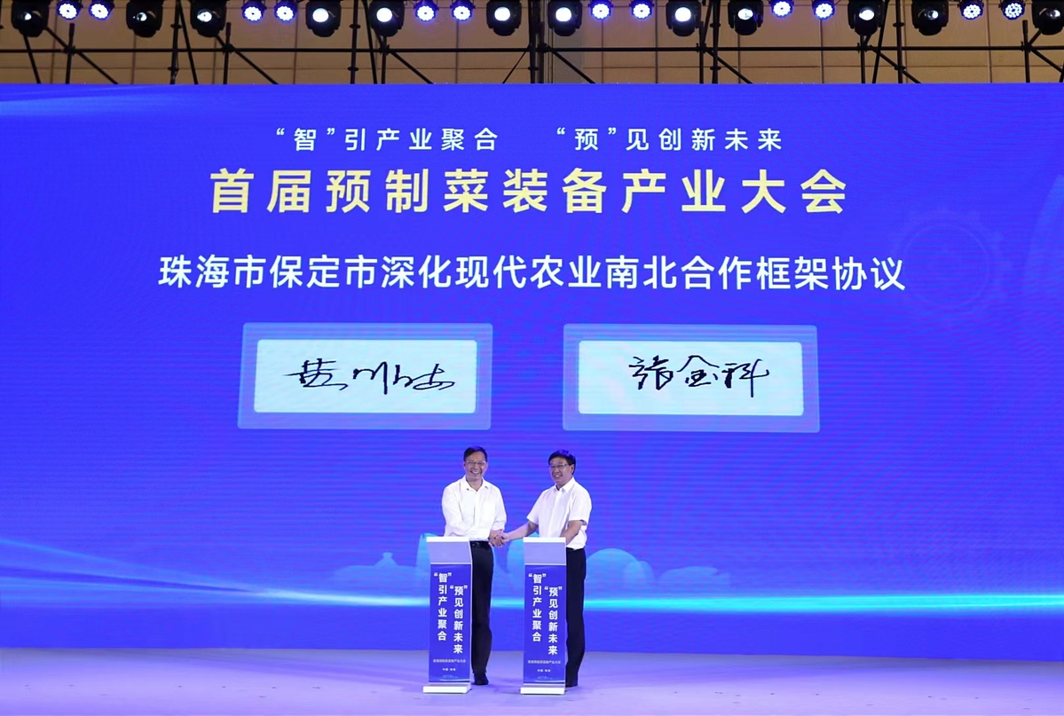 “智”引产业聚合,“预”见创新未来。7月4日,由农业农村部农业贸易促进中心、广东省农业农村厅、珠海市人民政府指导,广东省预制菜装备产业发展联合会主办,南方财经全媒体集团承办的首届预制菜装备产业大会在珠海开幕。本届大会上,广东省预制菜装备产业发展联合会正式挂牌,珠海市与保定市签署深化现代农业南北合作框架协议,5个预制菜重点产业项目现场合作签约,5项预制菜装备产学研课题获“双向揭榜”。市委副书记、市长黄志豪,农业农村部农业贸易促进中心副主任吕向东,省农业农村厅副厅长陈东出席大会。