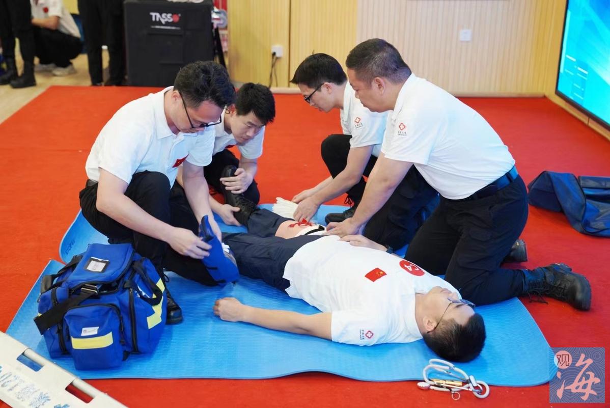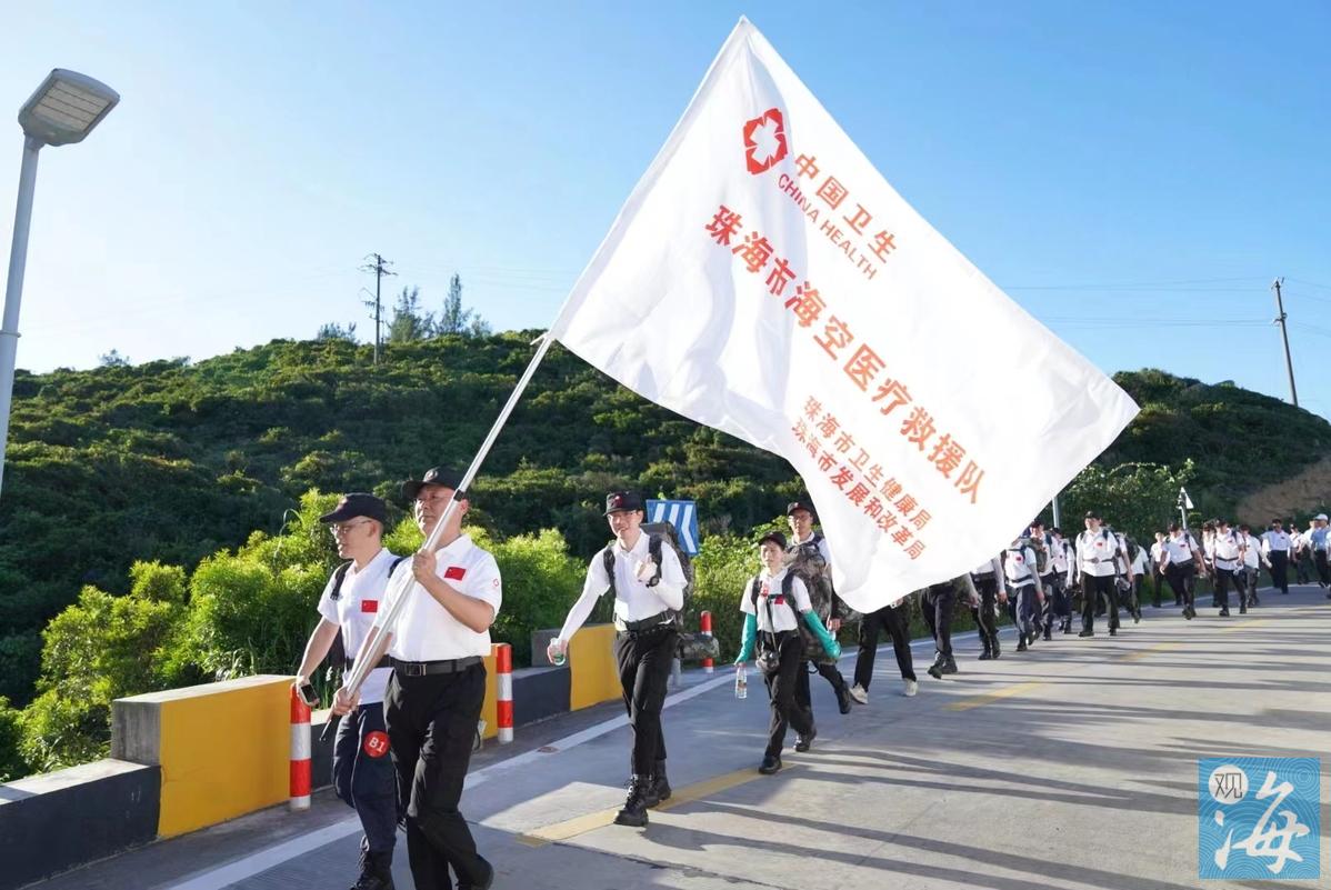 活动模拟海岛游客溺水急救、极端天气导致翻船事故紧急医疗救援等场景,海空医疗救援队快速集结开展医疗救援和突发事件处置。在训演过程中,队员们还接受了6公里海岛野外负重徒步行军和自搭帐篷夜宿海滩的考验。