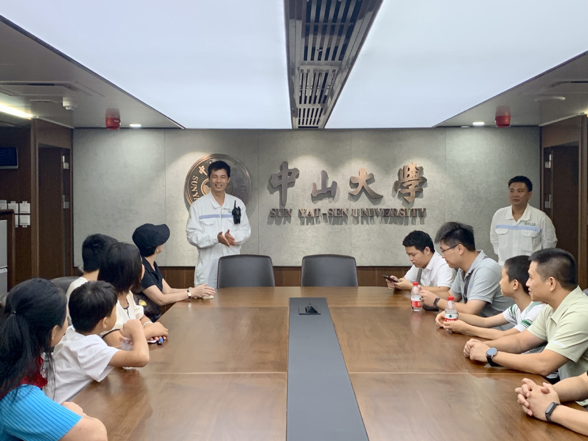 此次组织参观的“中山大学”号海洋综合科考实习船,是一艘配置高、能力强、创新技术高度集成的新一代大型海洋综合科考实习船,总长114.3米,型宽19.4米,排水量6880吨,续航力15000海里,具备无限航区全球航行能力,是国内设计排水量最大、综合科考性能最强的海洋综合科考实习船,也是我国海洋科考“国之重器”的新成员。它是中山大学提升海洋学科综合实力的重要支撑,也是名副其实的海上“移动校园”,成为大海洋学科群移动的海上实验室和海洋科技创新人才培养的海上基地。